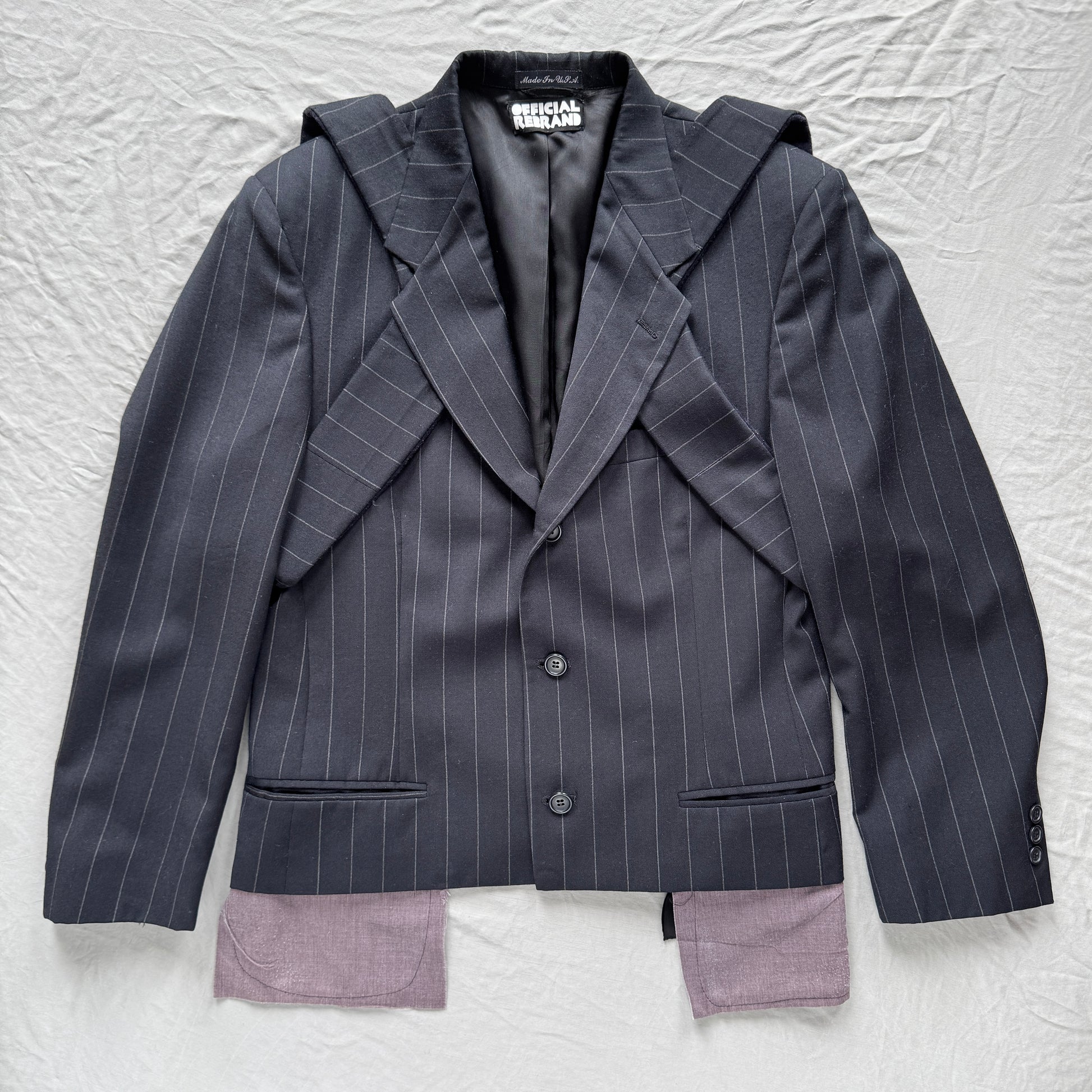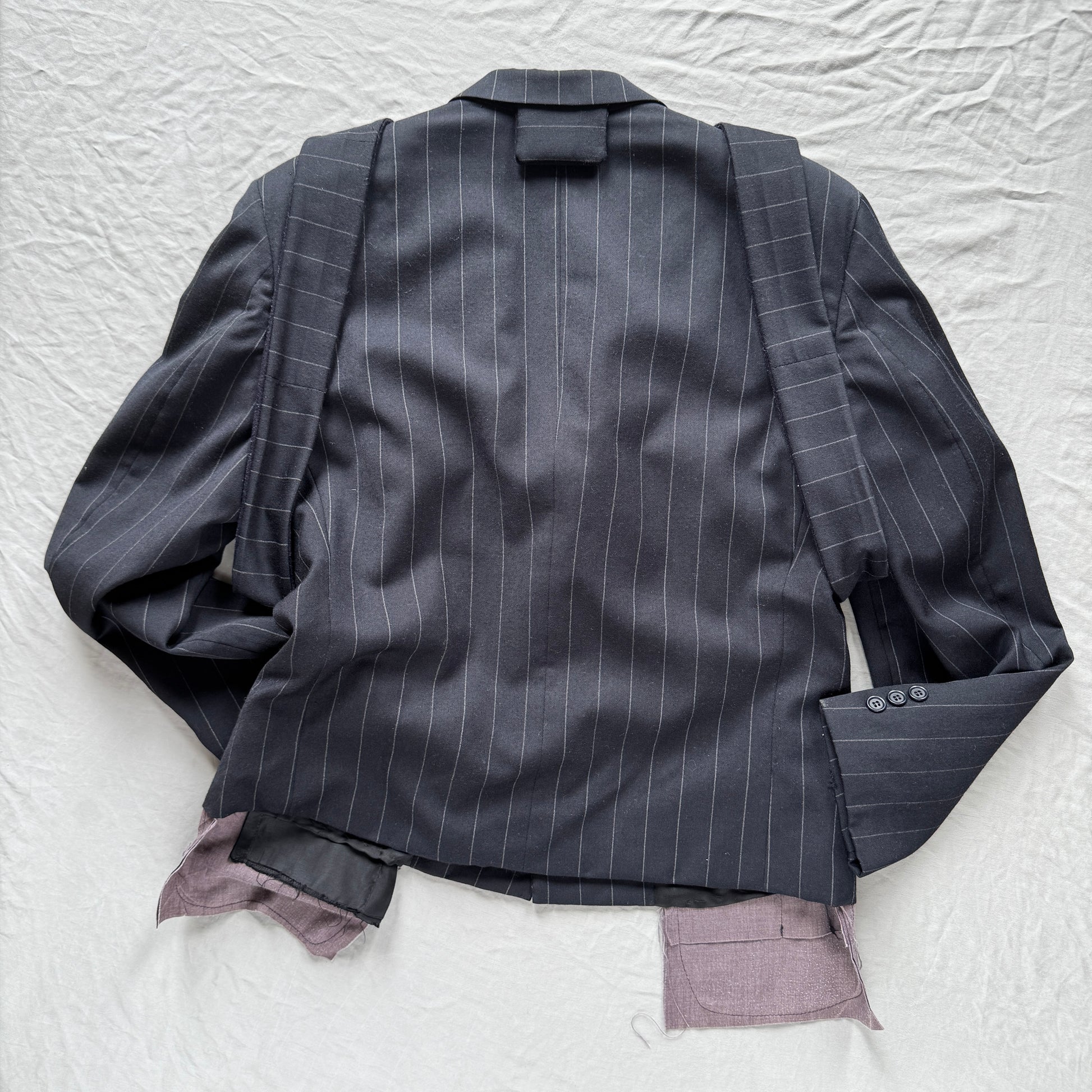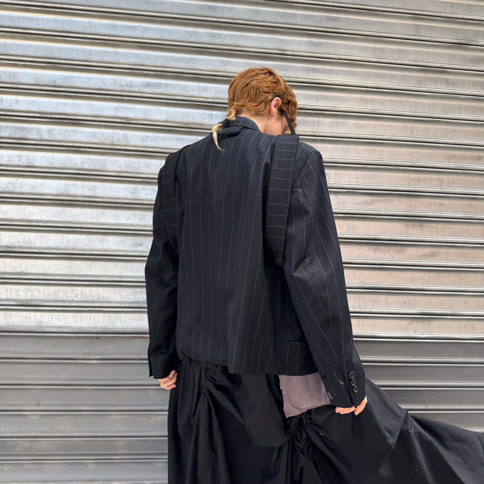 harness blazer, secondhand redesigned to remove damaged areas and create a unique bondage-inspired design.