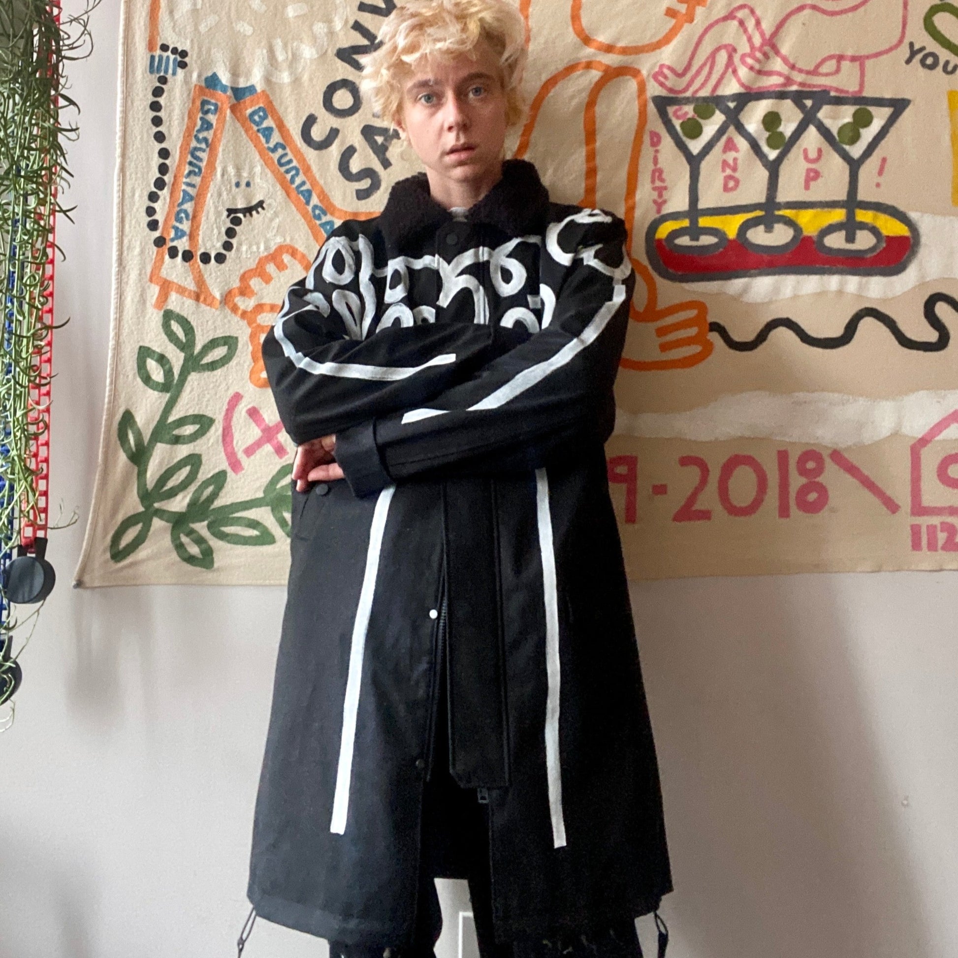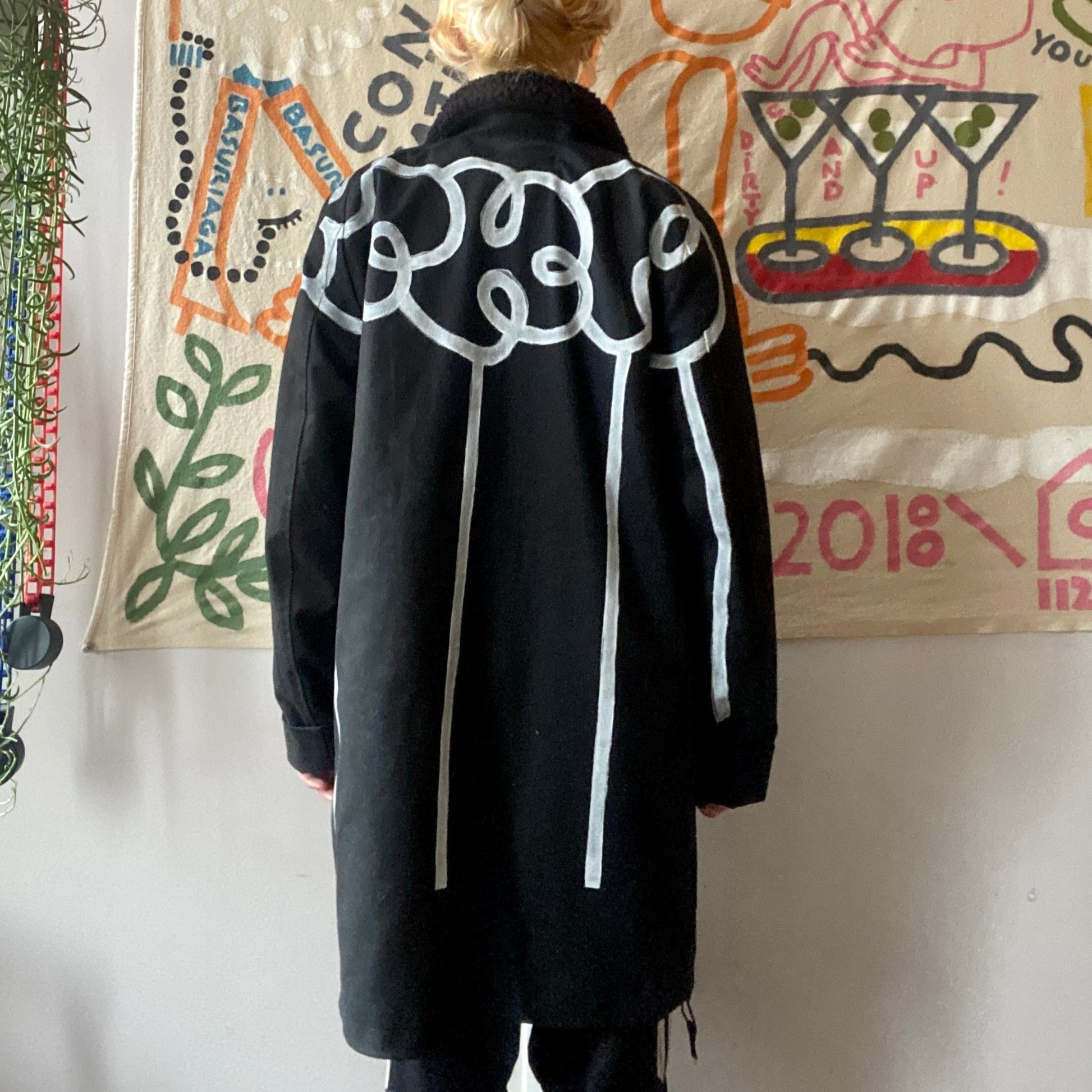 Instead of letting these sleek & technical jackets gather dust in storage, we are painting them for new life! This particular design features painted flowers covering the front, back, and arms. These black jackets have a warm and fuzzy collar, plus three interior and three exterior pockets. Made to order, please allow up to 2 weeks for creation.