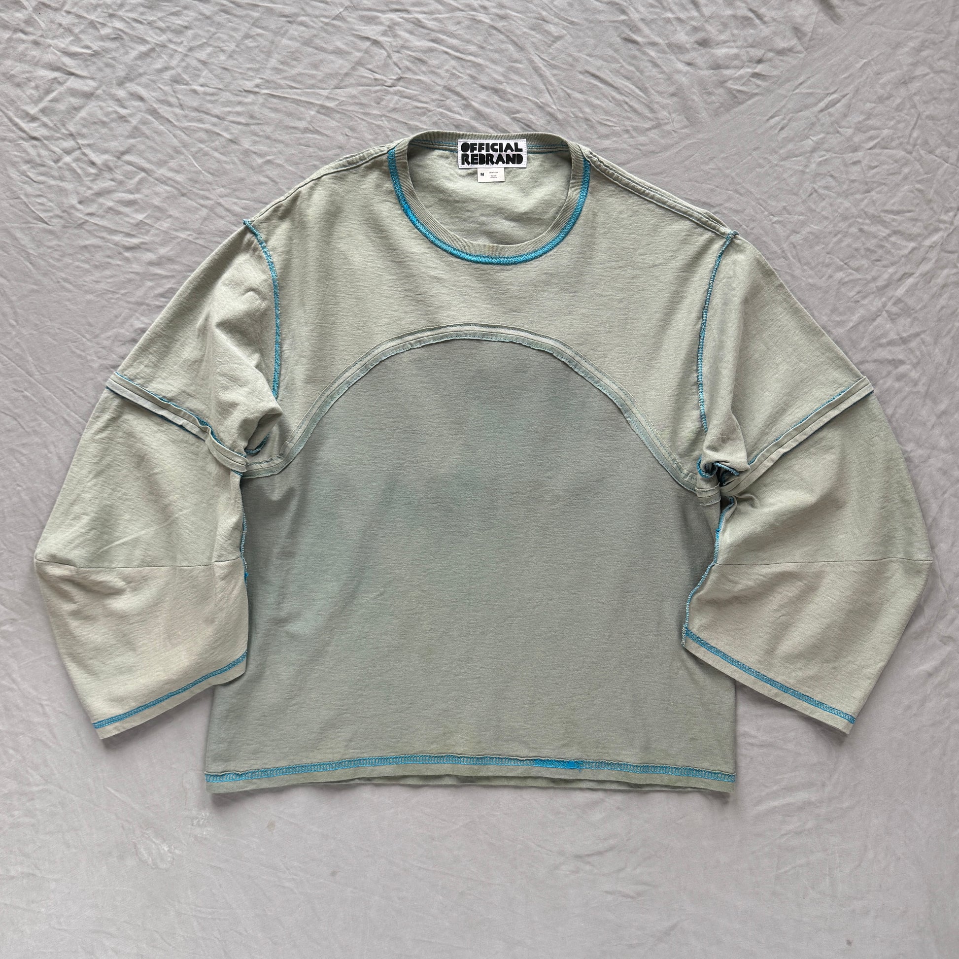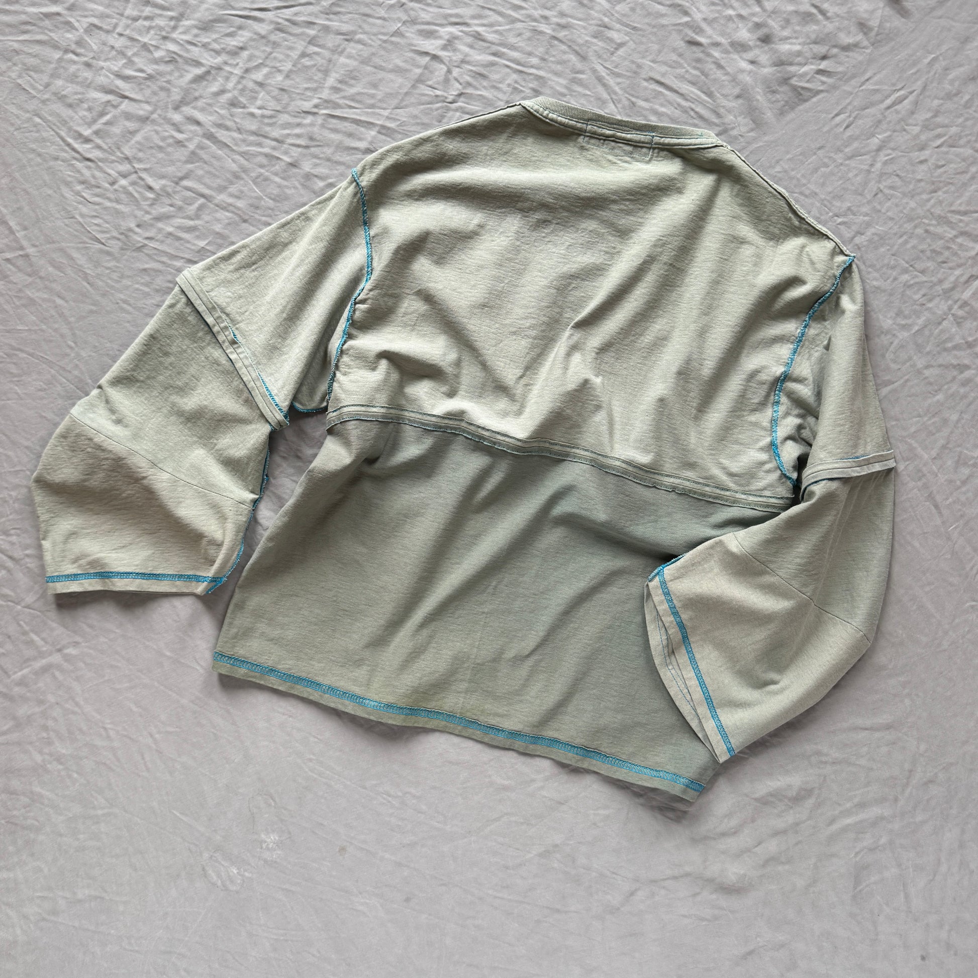 These cotton long sleeved T's are upcycled from unwanted promotional T-shirts discarded by a business in our neighborhood. We helped them manage this excess garment "waste" by combining two of these unloved tops into one unique piece that celebrates transformation fluidity and creative self expression.