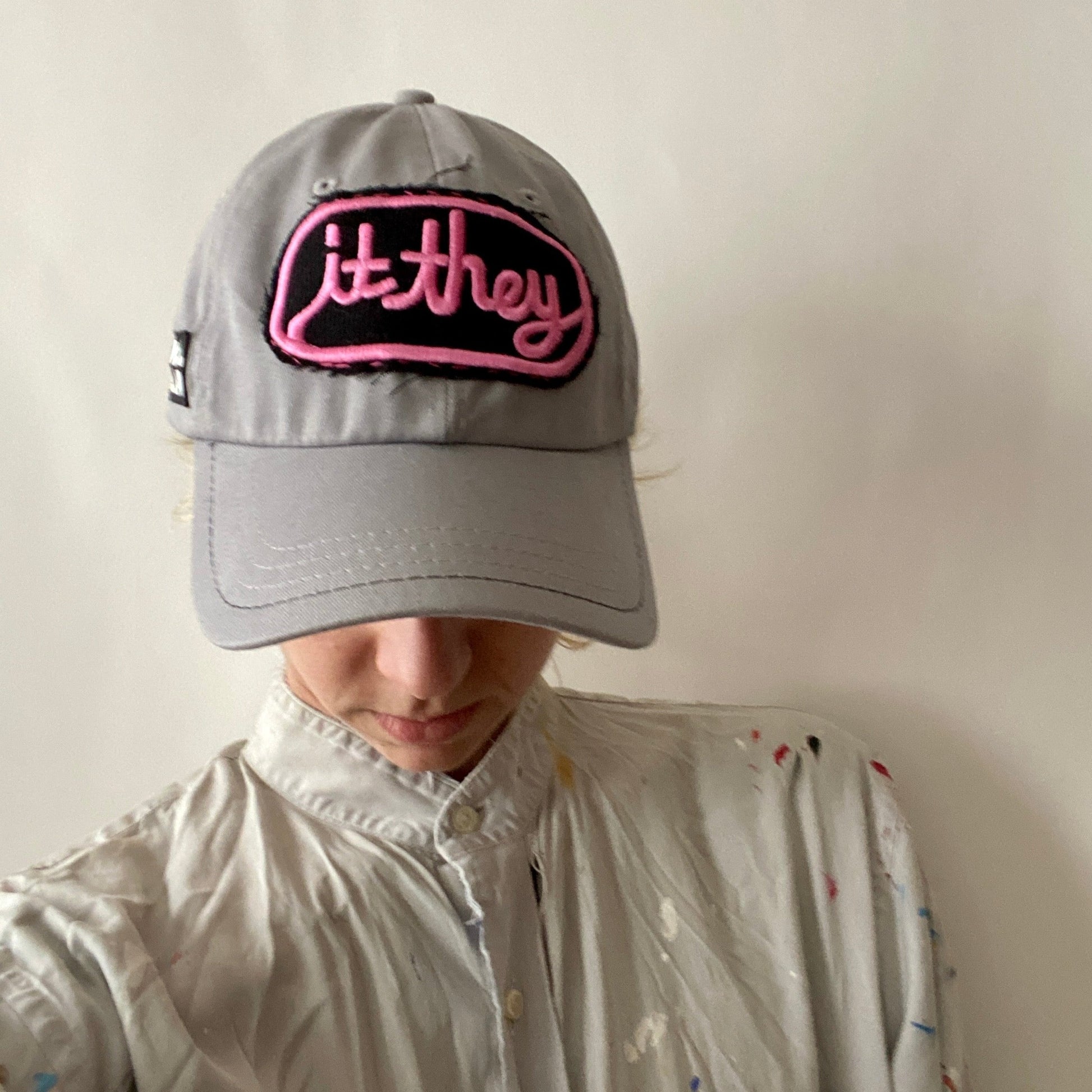 Classic baseball hats rebranded for a new life with embroidered patches hand-sewn over old logos. Each piece is uniquly upcycled or a production sample. Features adjustable metal closures or back (or velcro if noted).