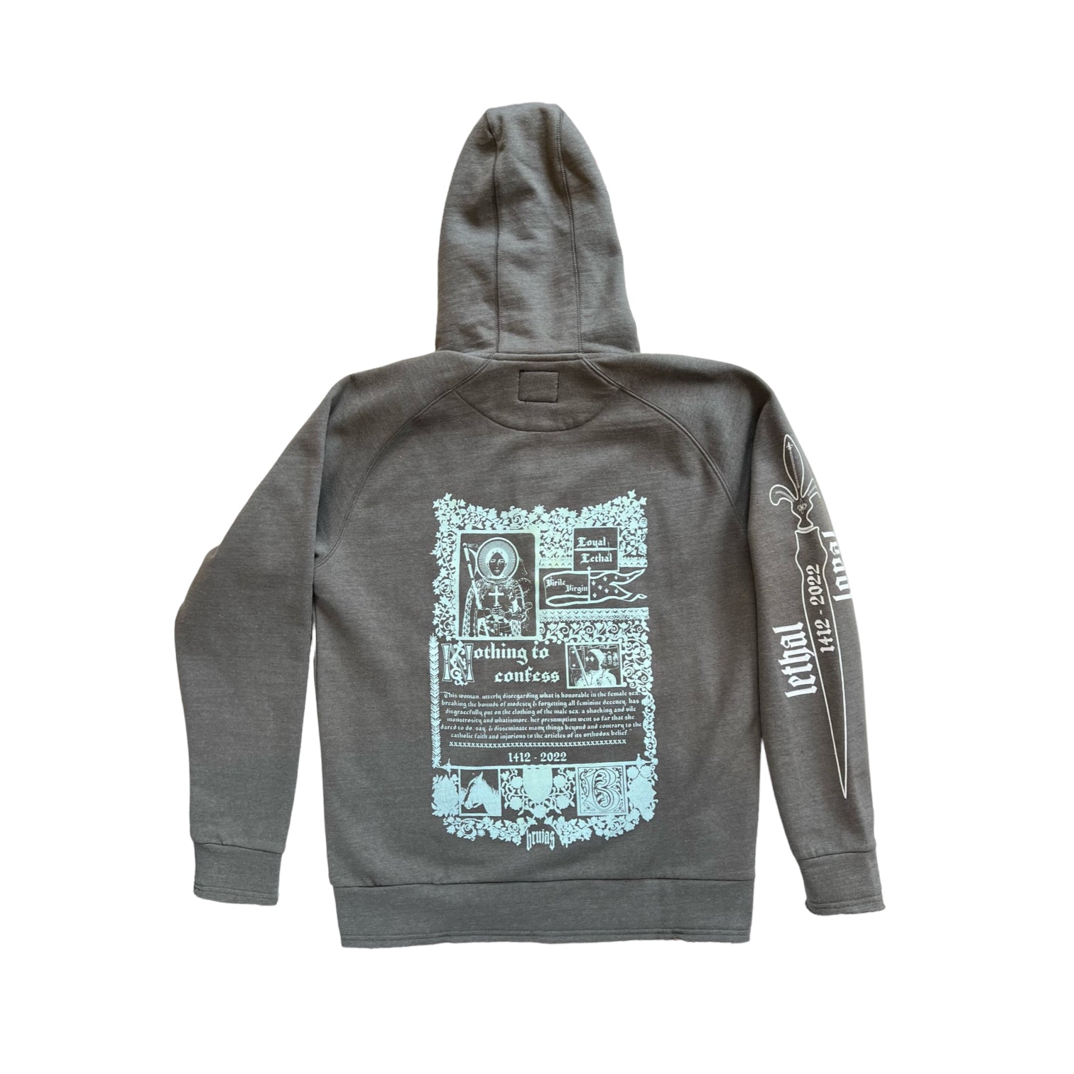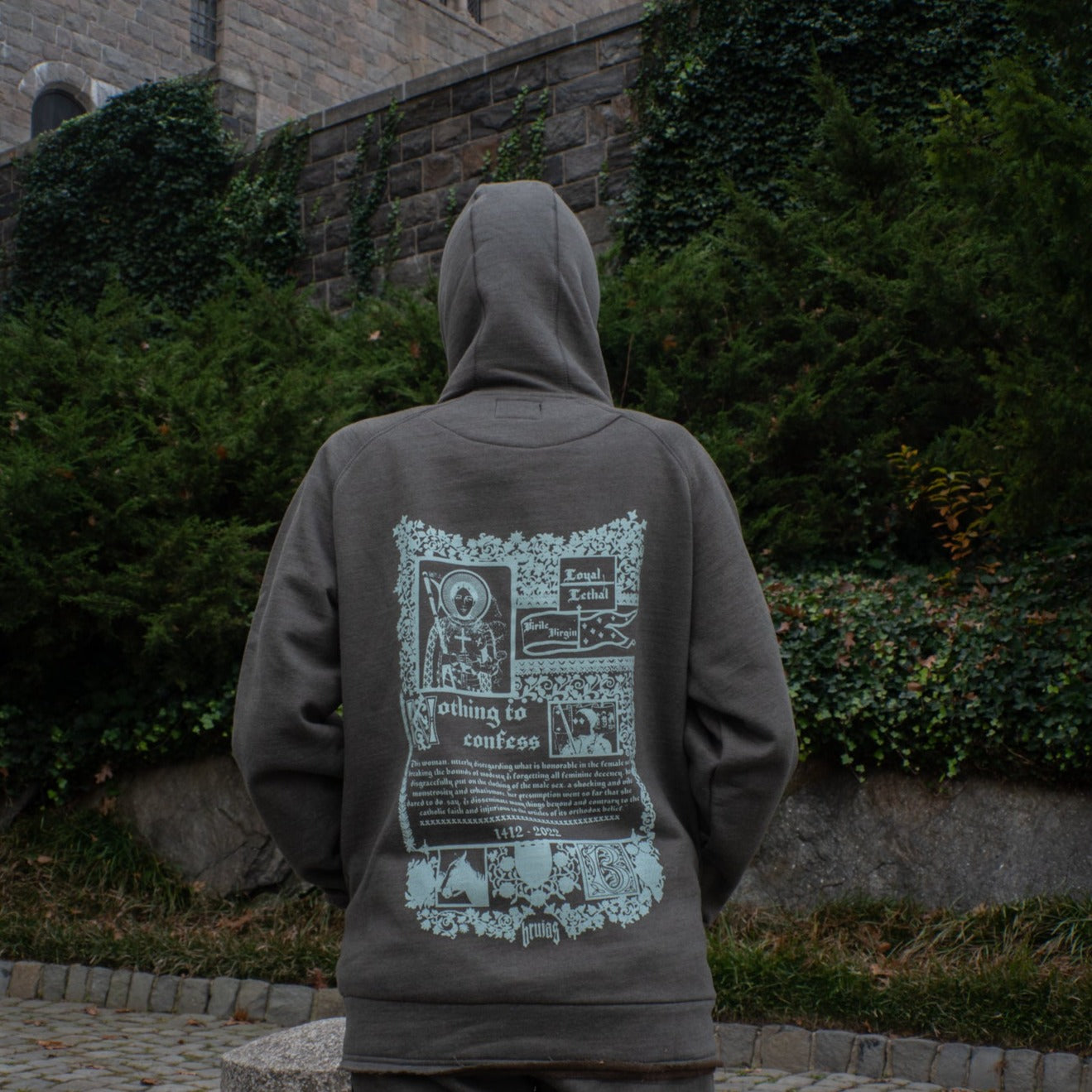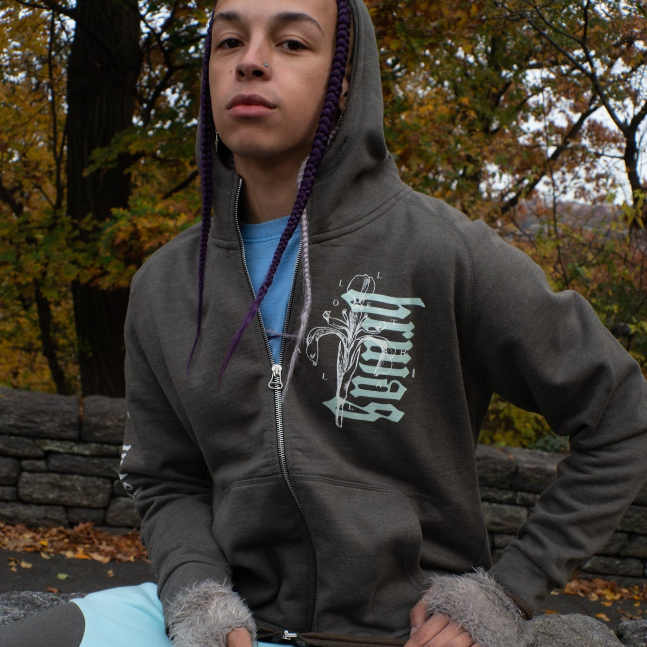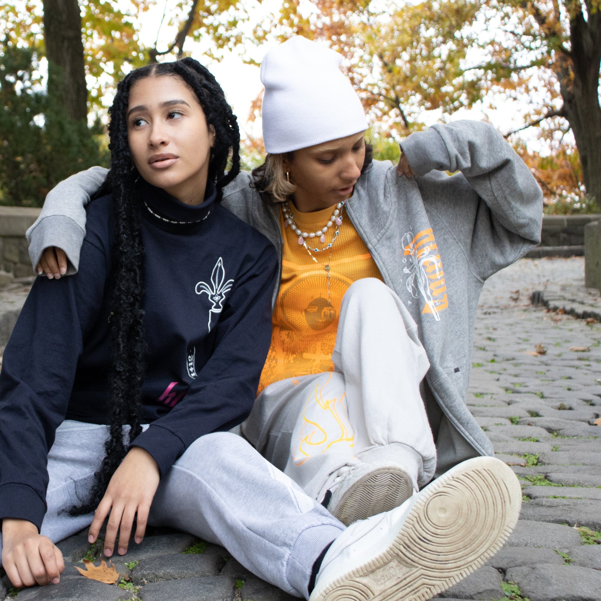 Printed in Brooklyn, NY on heather grey deadstock jackets from luxury sportswear brand.