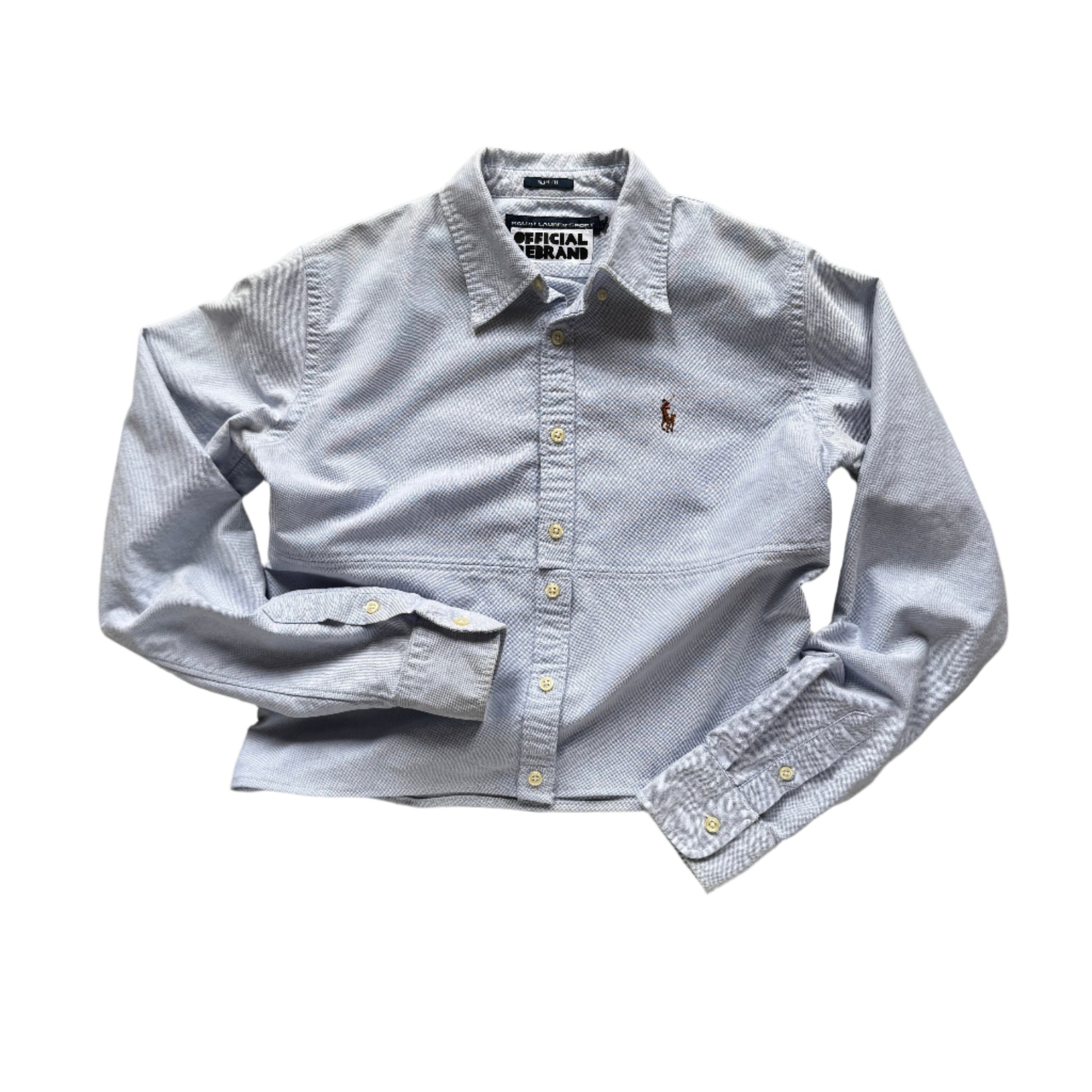 Light blue Ralph Lauren Sport: shoulder to shoulder 15 / chest 38 / highest point shoulder to hem 19 / shoulder to cuff 24. This shirt features light yellow and blue stripes under the collar.