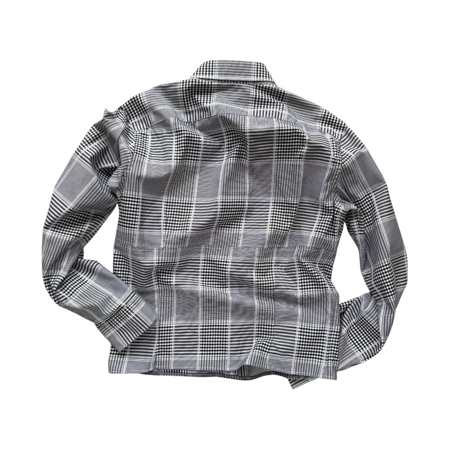 grey plaid: shoulder to shoulder 17 / shoulder to hem 23 / shoulder to cuff 25 / chest 39