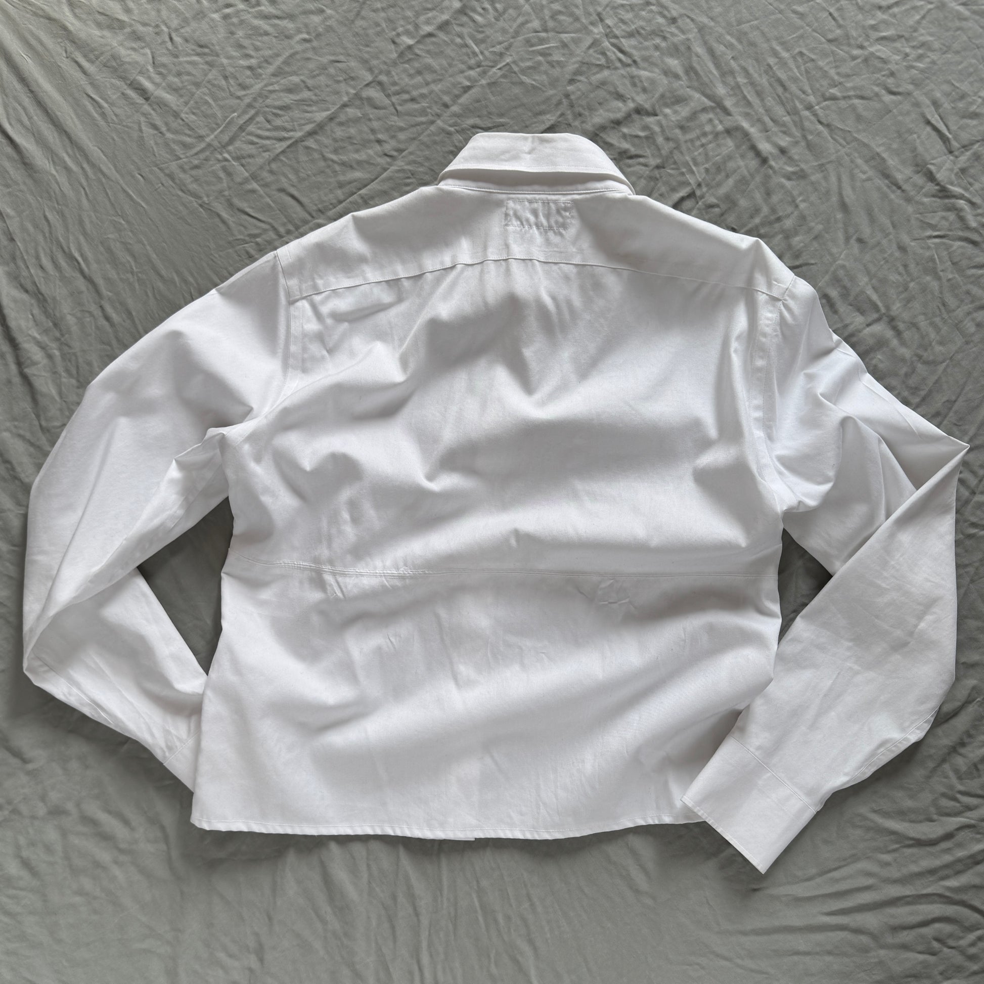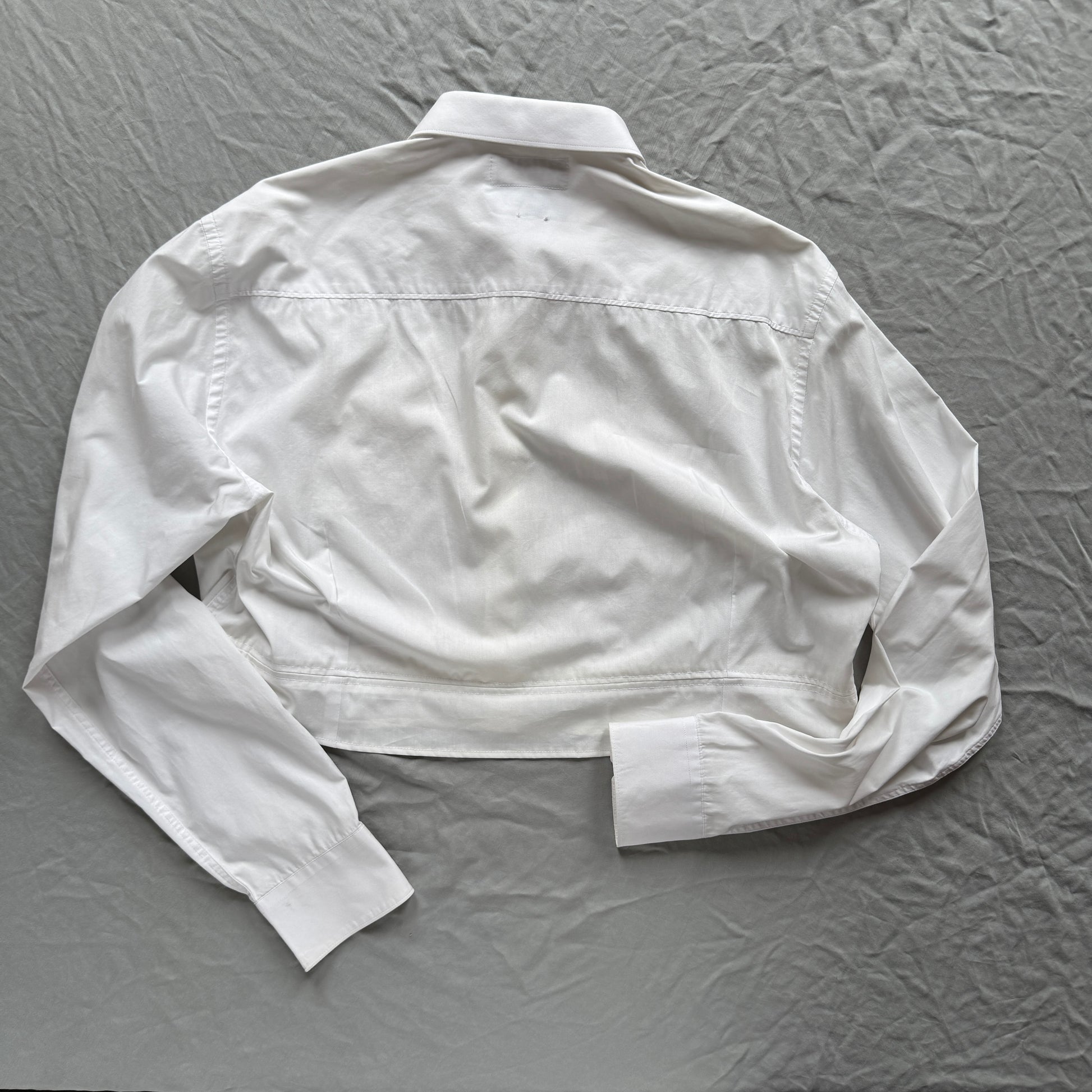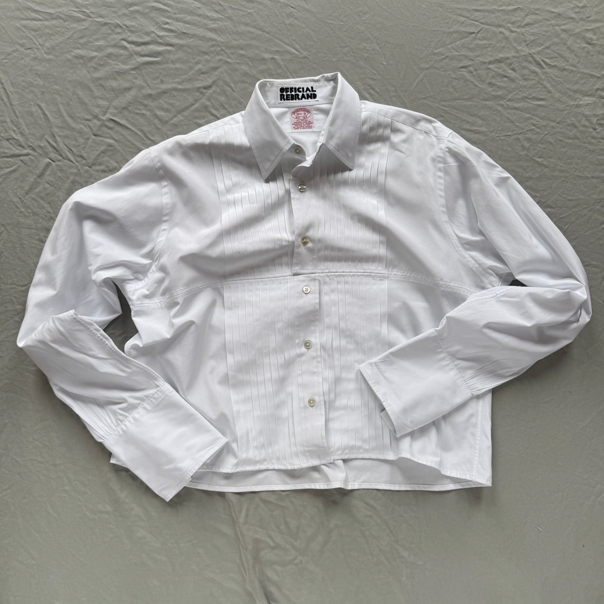 White super non-iron: Slim fit white button down, 100% cotton. Original garment made in Vietnam, slight yellowing can be found around the collar. shoulder to shoulder 18 / chest 42 / highest point shoulder to hem 24 / shoulder to cuff 25.5.