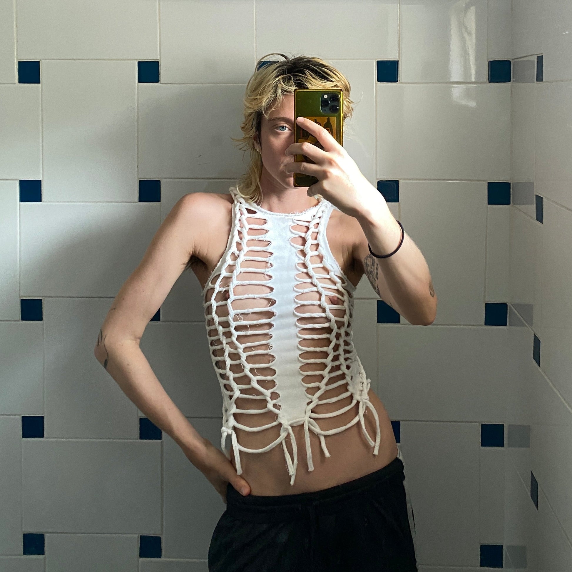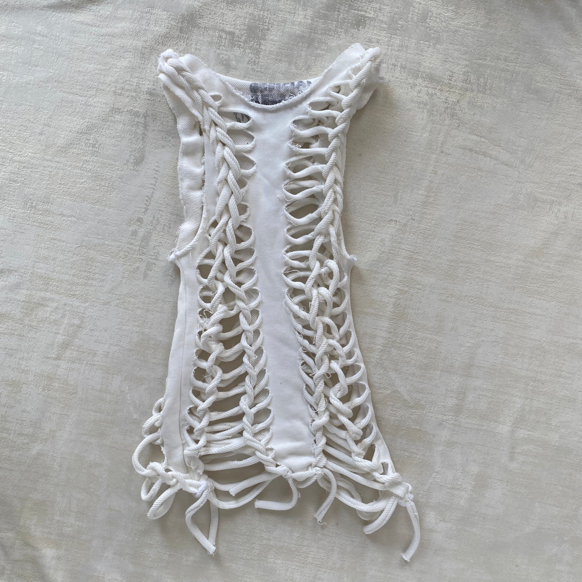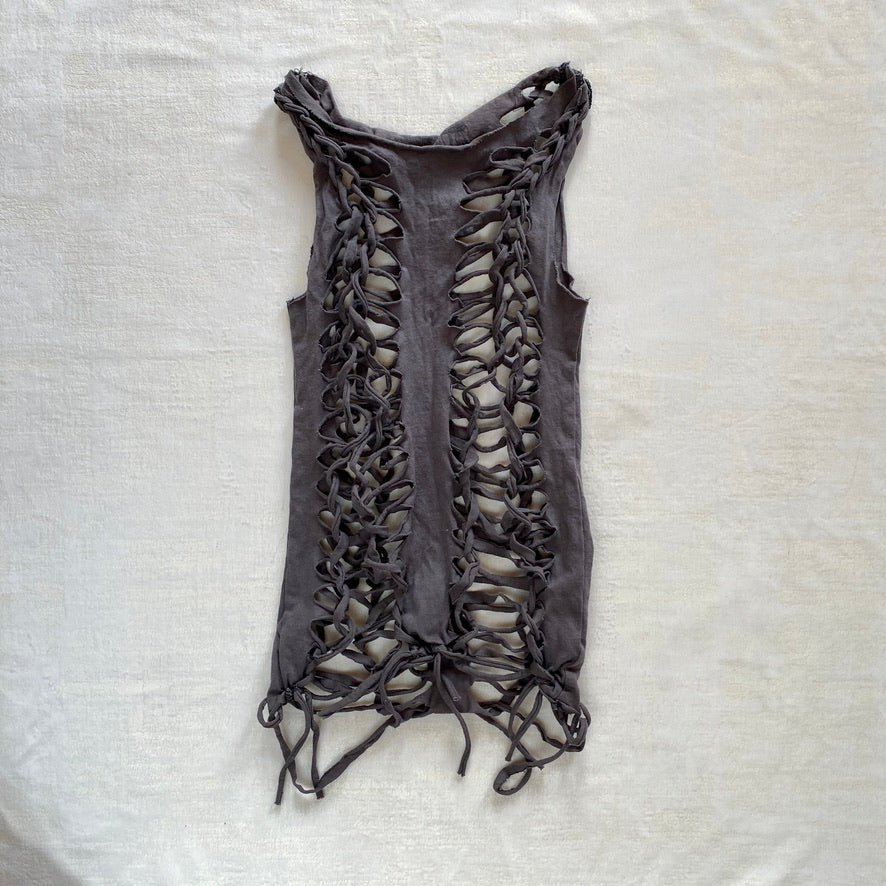 These tanks were repurposed using deadstock fabric, hand cut and sewn by MI Leggett and hand-woven by Raspaditos for a fun new life. Quality cotton, soft, stretchy, and size flexible. Models are wearing a size small in the images. The stone variety utilizes a lightweight jersey fabric and the white option features a comfortable, thicker terry fabric. While we currently offer 3 sizes, these garments stretch and shrink to suit a wide range of body proportions.