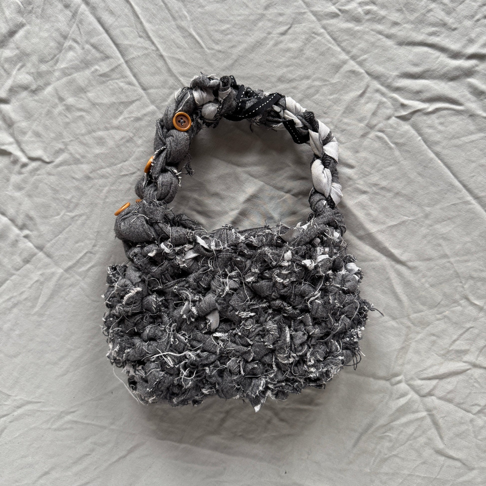 Upcycled from fabric scraps discarded during our non-binary flip shirt upcycling process, this bag was hand-woven into a new accessory to reduce waste and give life to the formerly unwanted.