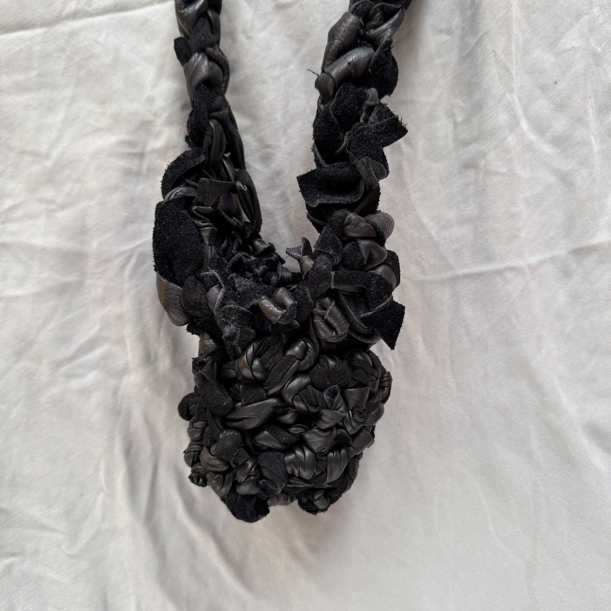 These uniquely upcycled basket bags were woven into new products to reduce waste and give life to unwanted scraps of leather and fabric. Whether we approve of it or not, leather (waste) exists, so we might as well make use of every little scrap of it!