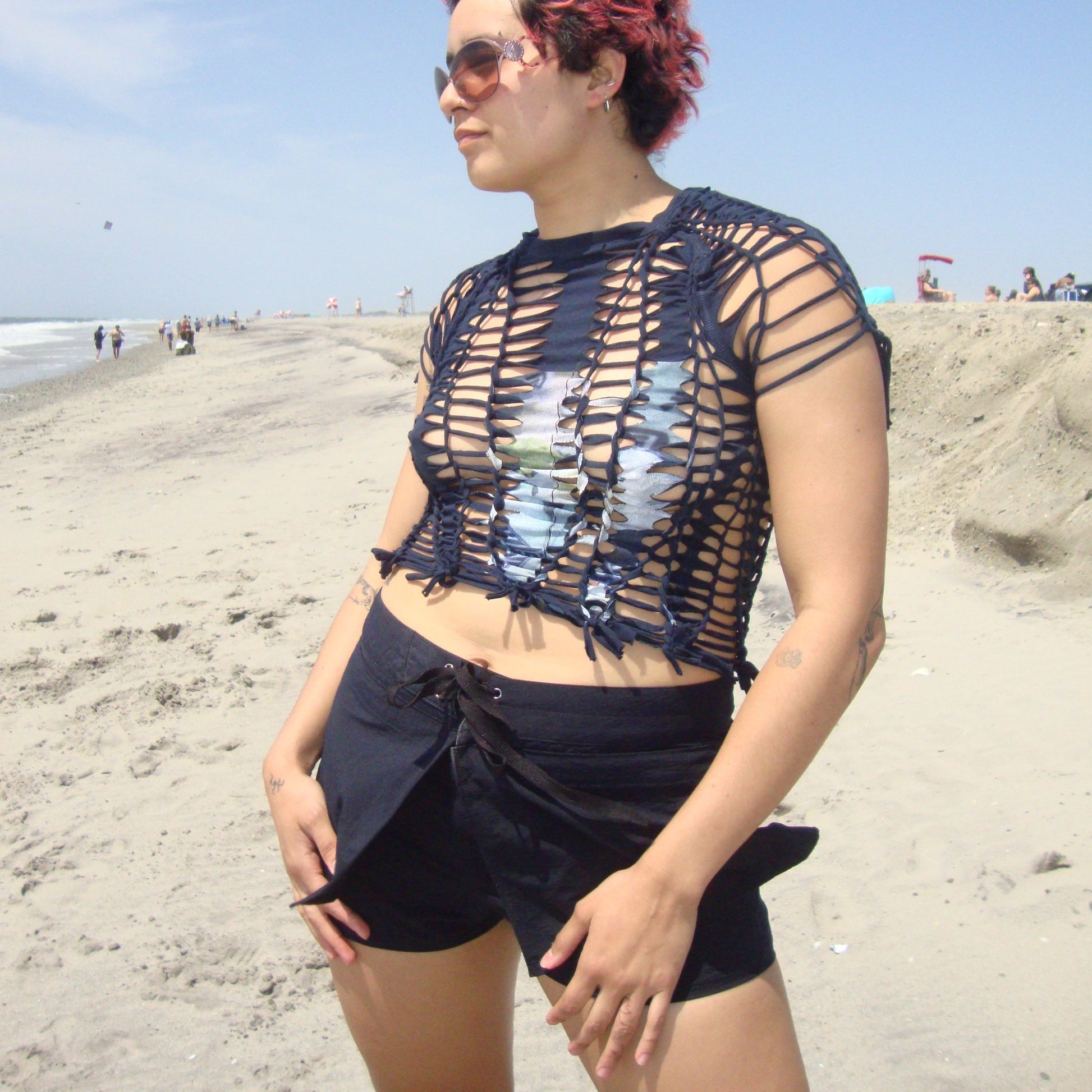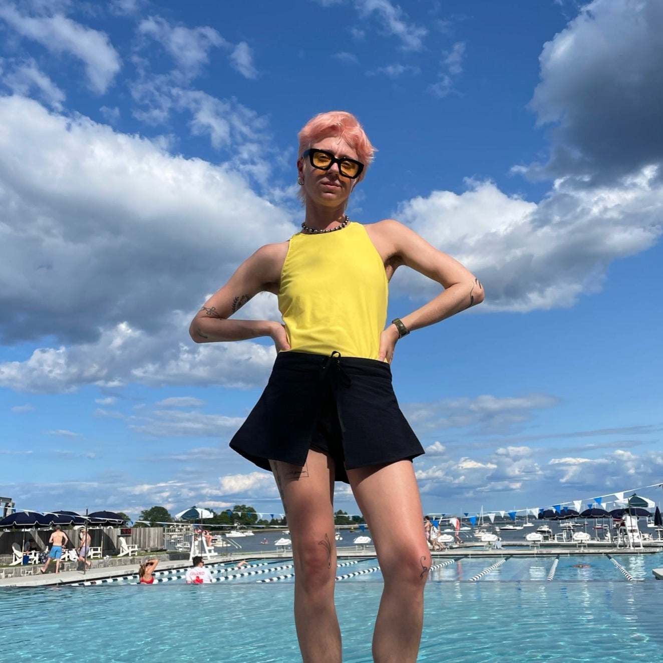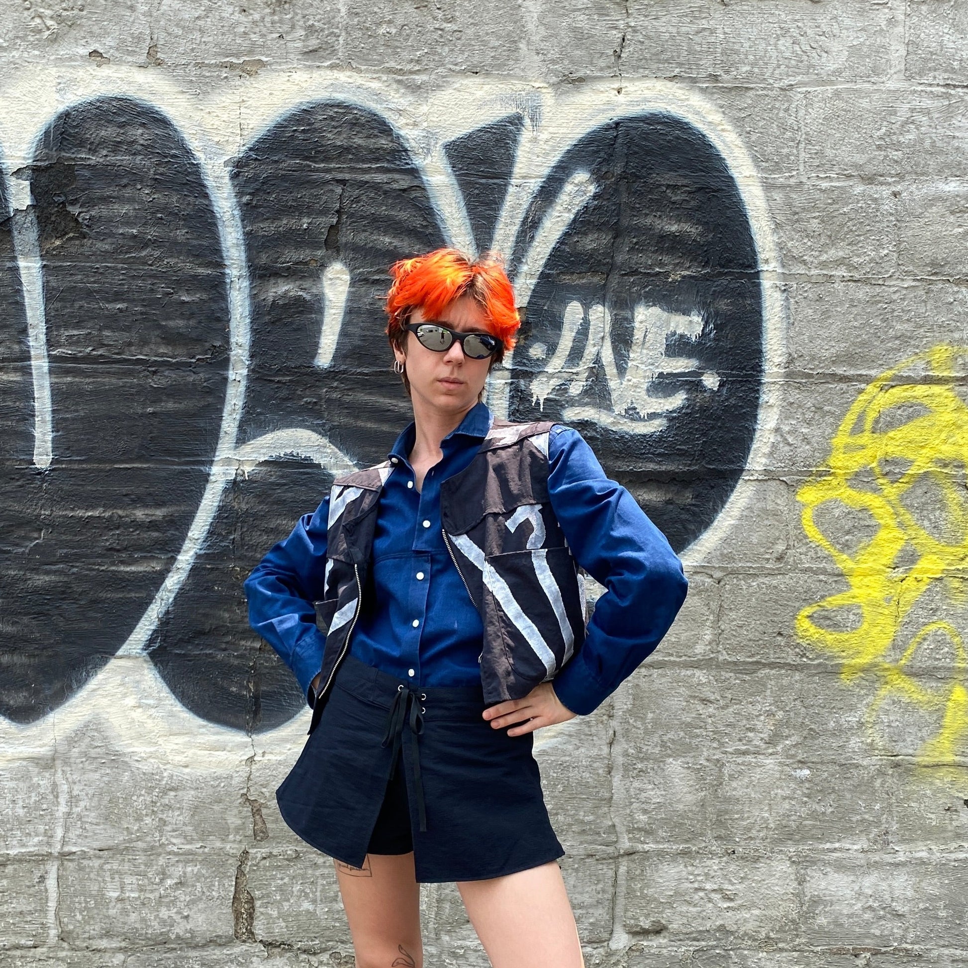 To reduce emissions and make use of what already exists, these dark navy, lightweight, 100% nylon skorts were upcycled from deadstock pants from a men's luxury sportswear brand that closed. These quick-drying, athletic style skorts are extremely breathable and can be worn in the water. They have single a back zippered pocket under the skort flap to keep your items secure and a layer of overlapping skirt panels. Original garments cut & sewn by workers in Pakistan, transformed on a made to order basis by MI Leggett.