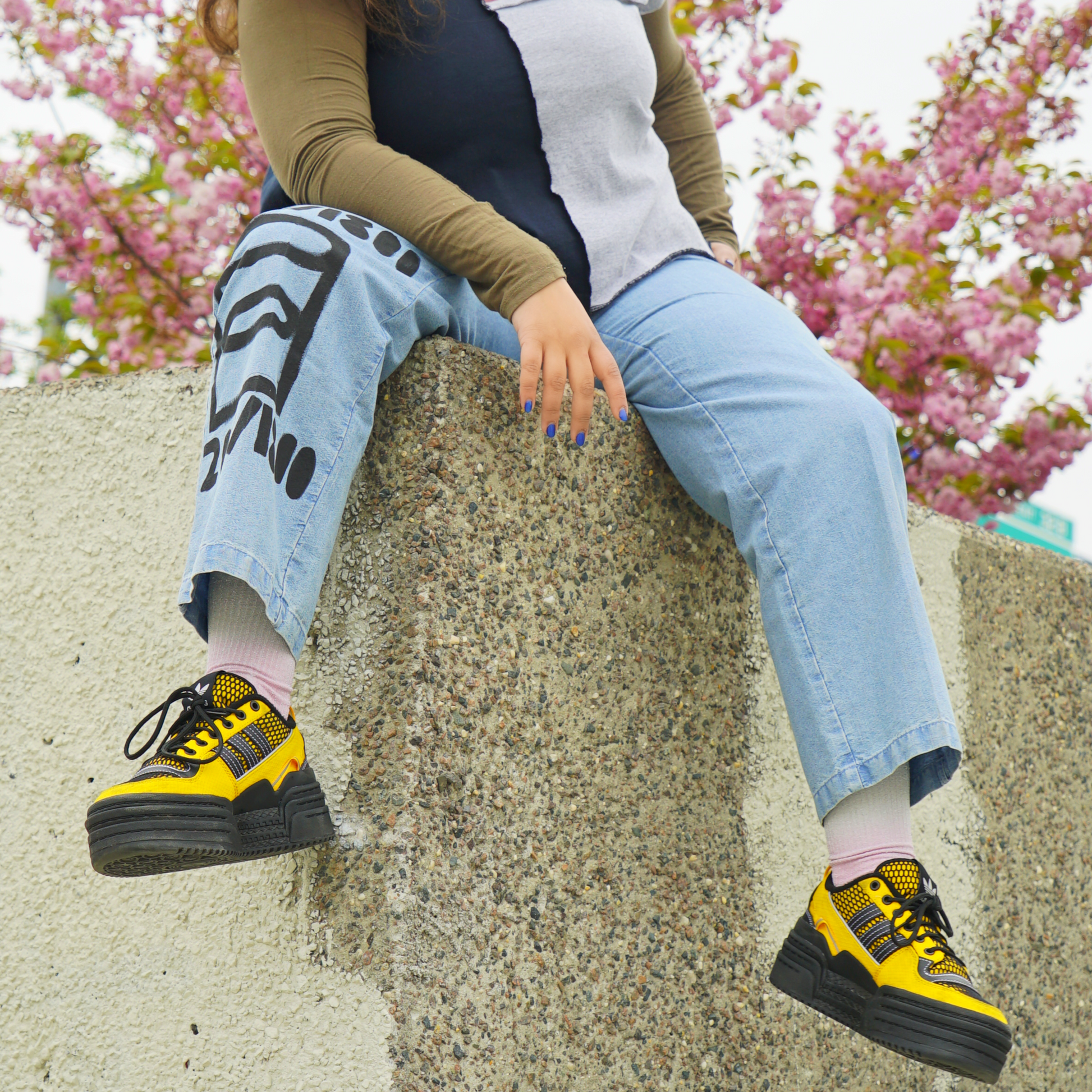 In this series, we bring this statistic to life by painting representations of these numbers over reclaimed jeans. Each gallon and its corresponding number out of 1,800 is painted by MI Leggett on a renewed pair of jeans.